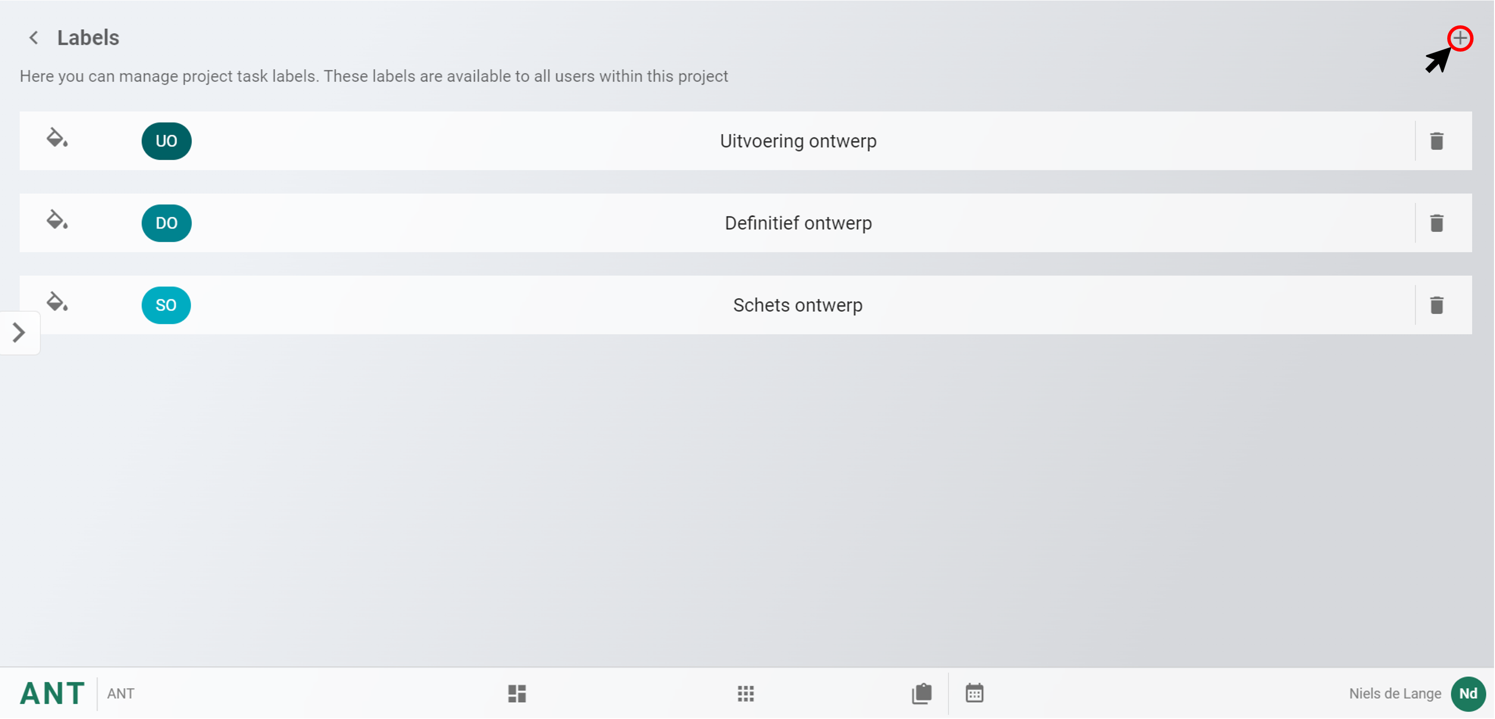 Doormiddel van labels kunnen ANT taken overzichtelijk worden gemaakt. Op deze pagina wordt uitgelegd hoe deze labels toegevoegd kunnen worden.