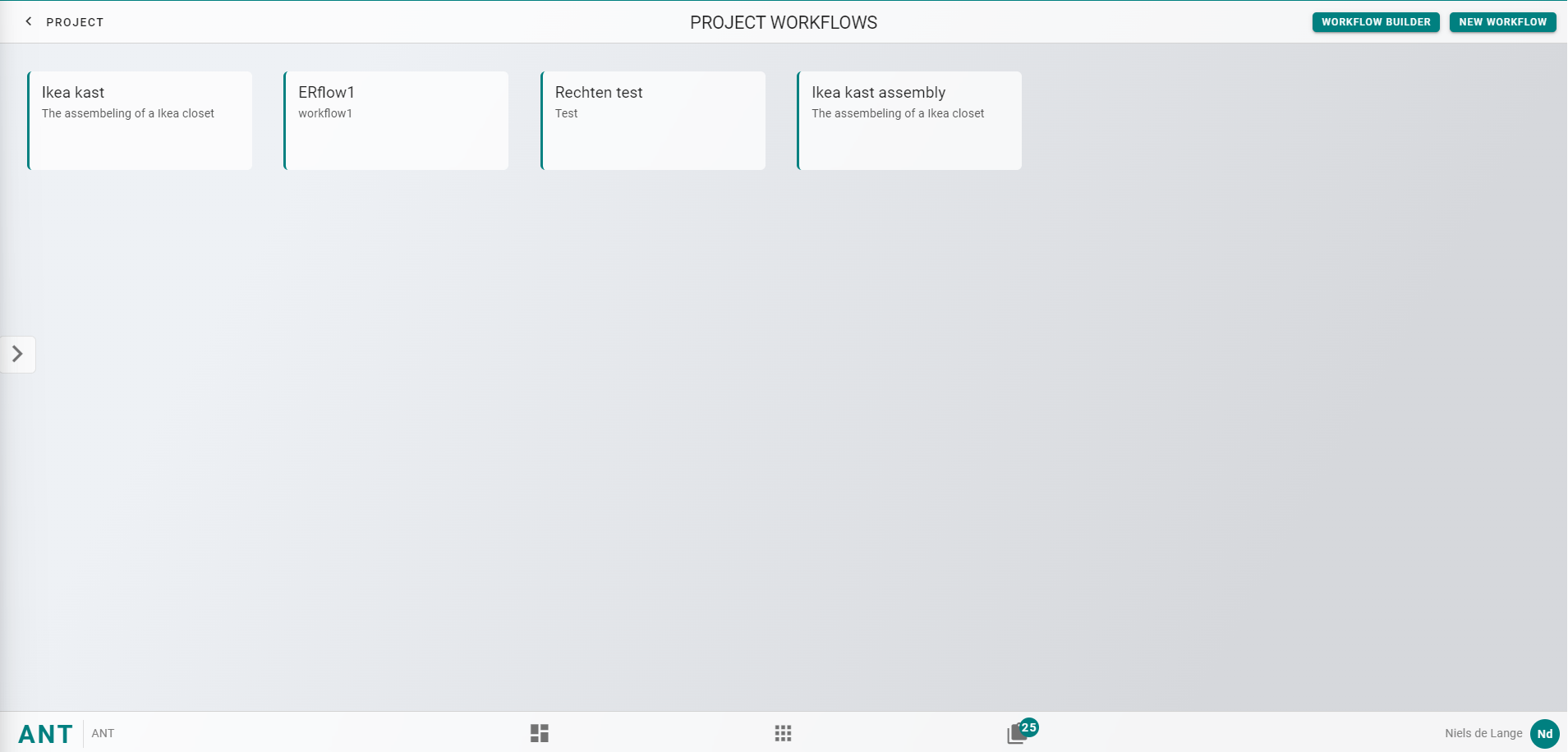Binnen ANT is het mogelijk om workflows op te bouwen. Workflows zijn stappen die parallel of in serie uitgezet kunnen worden om bepaalde taken uit te laten voeren. Een workflow is een verzameling van stappen en andere workflows die in een specifieke volgorde is gezet middels links. Een stap noemen we een block. Elk block is een stap in de workflow waarbij er iets moet gebeuren, zowel door een gebruiker als door het systeem.