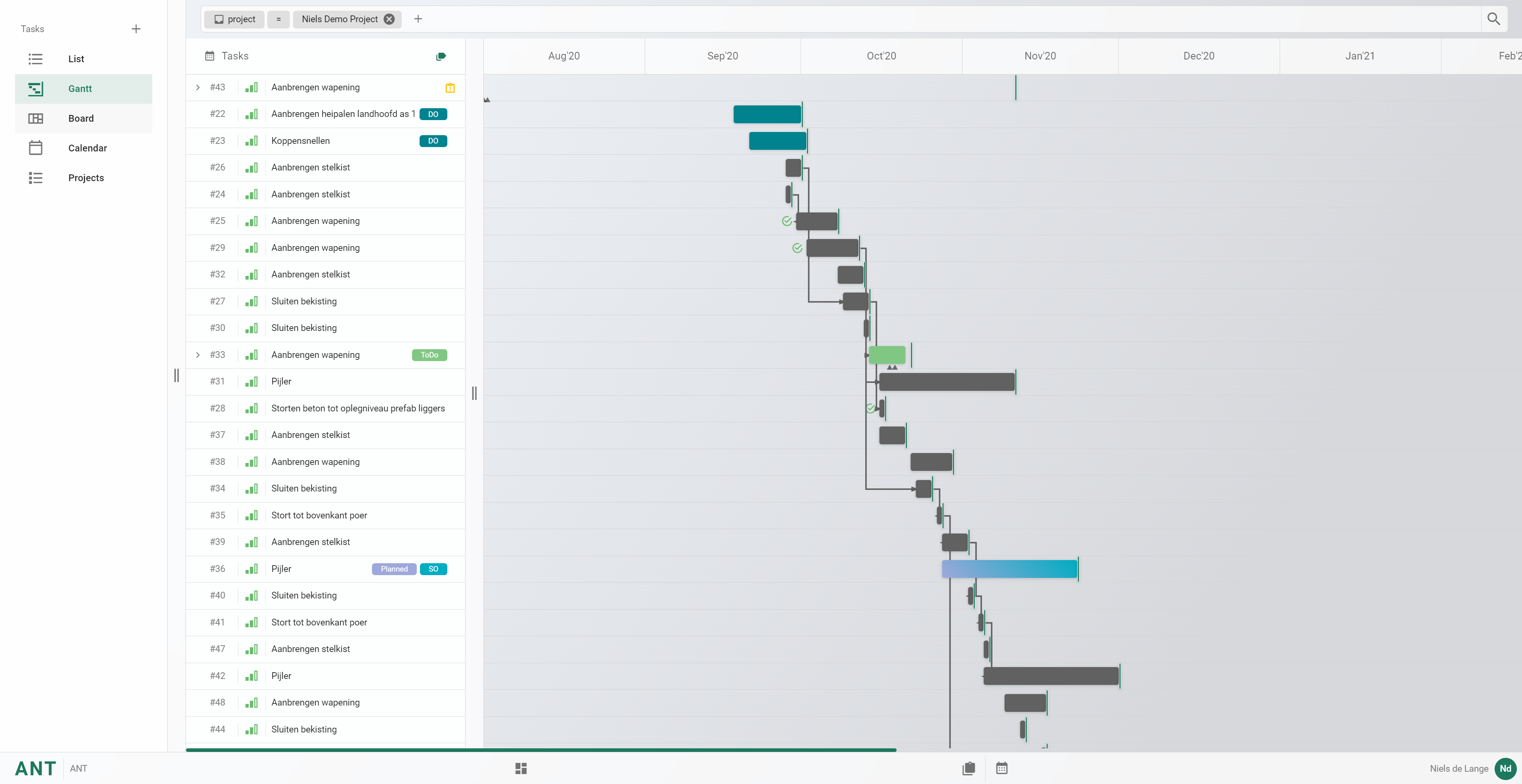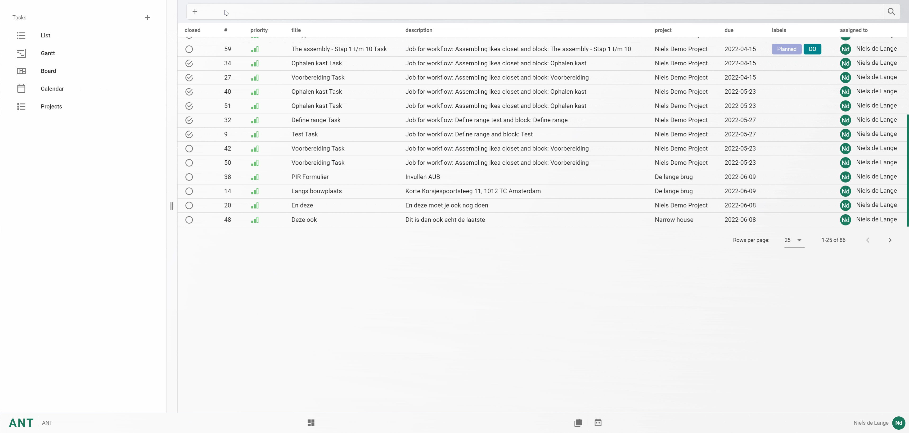 Tot slot hebben we een taak filter geïntroduceerd in ANT. Met deze filter kan er gemakkelijk taken gefilterd worden om zo een beter zicht te krijgen op de taken.